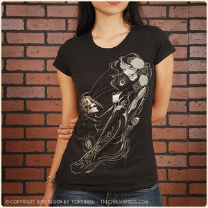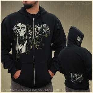 As a concept in 2007 the launch of the Civilian Press is far from an overnight project. Artist Anthony Gonzales (aka tonymash) has been weaving through the Orange County art & music scene for over a decade. Developing designs and brands for clothing companies, boutiques, record labels, album covers, corporate branding, and major music events such as hootenanny and an artwork collaboration of Kat Von D for the first annual MUSINK music and tattoo festival 2008. Looking for an outlet for his own vision and expression, The Civilian Press was born. Attracting a broad range of fans with sensual designs in hand with Dia De Los Muertos elements, The Civilian Press appeals to the alternative crowd, just as much as it has been welcomed by the urban and artisan groups. Now with the decision to go all organic with the tee shirt line and being more conscious about environmental impacts of the clothing industry, The Civilian Press is geared up to outfit the Eco-Fashion do-gooders as well.