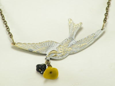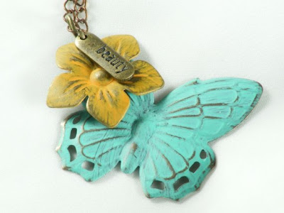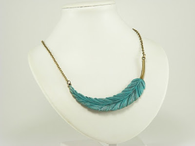 The talented designer of Gleeful Peacock generously sent me the item of my choice from her store. This wasn't the easiest task since she has the most beautiful, hand crafted, and unique designs to choose from! After careful consideration, I opted for the Turquoise Feather Necklace ($26). This is one of the most beautiful feather necklaces I've come across so far. The antiqued brass chain gives it a genuine vintage feel. The feather is beautifully detailed with high quality stamping and is painted with a deep turquoise color that is simply gorgeous! I can imagine buying something like this from a store like Urban Outfitters.