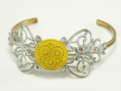 Neo Victorian Vintage Metal Cuff Bracelet White Yellow $18