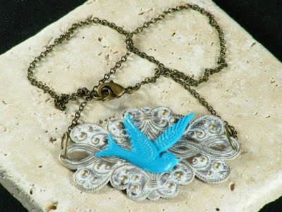 Blue Sparrow in the Clouds Necklace $21