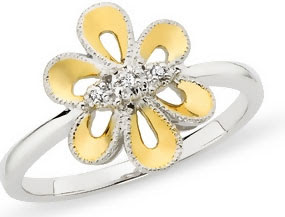 14K White Gold & Diamond Ring w/ Yellow Rhodium $250