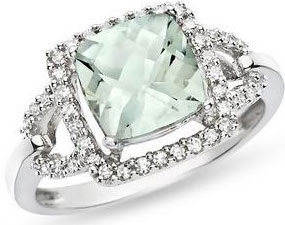 2 Carat Green Amethyst and Diamond 10K White Gold Ring $350