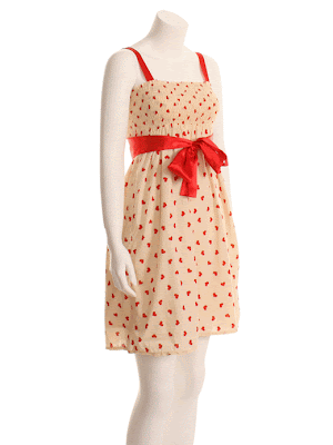 Heart Print Smocked Dress with Satin Detail