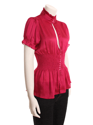 Chiffon Top with Smocked Waist and Pearly Buttons