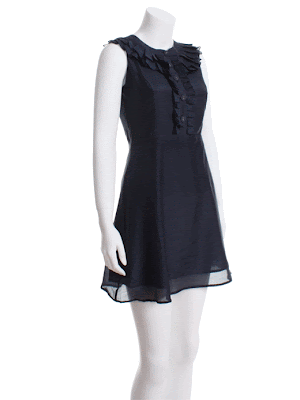 Pleated Neck and Frill Front A-Line Dress
