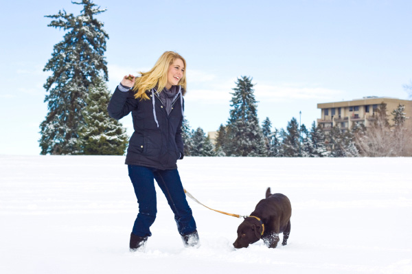 Dogs need walks even in the cold, so make sure to wipe their feet with a warm damp cloth after walks to ensure that salt and magnesium chloride and other chemicals are not stuck to their paws. If their feet are not cleaned off after walks, their pads can bleed or they may ingest poison.