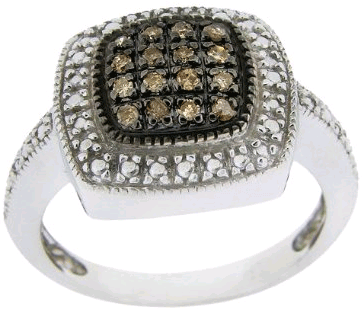 Sterling Silver Brown Diamond Square Ring - Silver $69.99